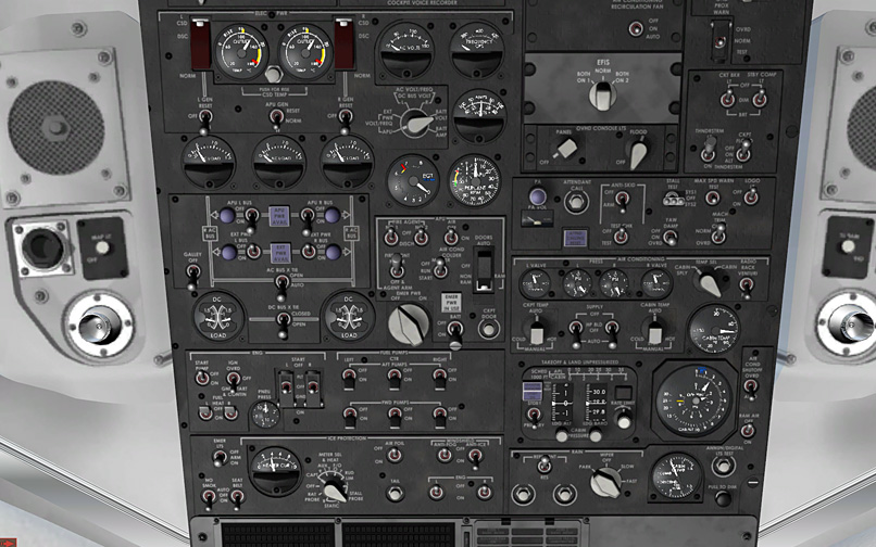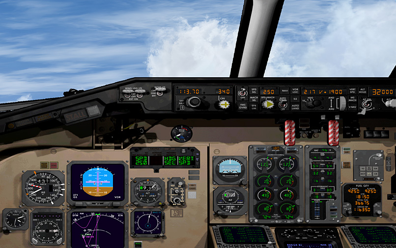 If you don't like to learn all the systems at first, you can choose one of the start modes, like 'cleared for takeoff' which configures the aircraft automatically for you up to the takeoff flap setting. Advanced instruments and functions like the flight computers, weather radar and autoland feature are all simulated. Buttons and knobs that are clickable on the panel are clickable in the virtual cockpit as well. So you can do an entire flight from within the vc. Interesting detail: the windows on the fuselage are not textures, but you can see right through the aircraft and see the interior. It looks more realistic compared to flat textures.