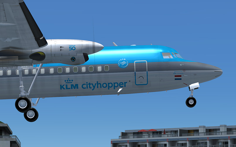 Precisionaerobus (PAOB) is developer of payware aircraft for FS2004 and FSX. However, their Fokker 50 is for FS2004 only. The package includes the F50 model with 5 liveries (KLM, VLM, SonAir, MASwing and VLM-Aanvalluh), 2d panel, virtual cockpit and sounds. The exterior is quite detailed and so are the liveries. Many (but not all) cockpit systems are simulated, like air conditioning, anti-ice, APU, electrical, fuel, hydraulics, etc. You can access those systems via the 2d panel or in the virtual cockpit. The panel looks realistic, many buttons ands knobs are clickable. The vc isn't bad either, although the lack of photorealistic textures makes it look a bit cartoonish. A passenger cabin is also modeled in the vc. Unfortunately, the wings are not modeled in the vc which means no wingview.