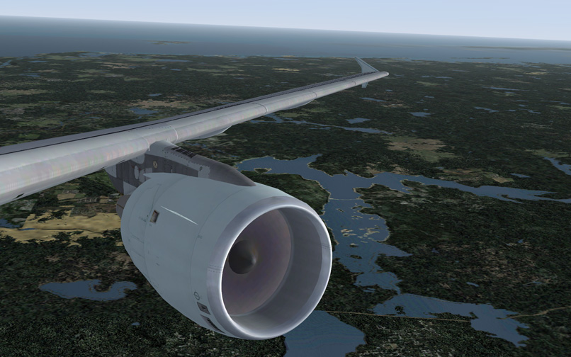 The flightdynamics are ok, but the ground effect is minimal, which can result in bumpy landings due to the little effect of the flare. Another thing is the main landing gear. Like almost all other overland aircraft, the main landing gear seems to float for a bit over the runway upon landing and finally sinks to the ground when rolling out. This is a common problem in FS, especially landing gear sets with four-wheel bogies or even more wheels. In this case the problem is present with two-wheel bogies.