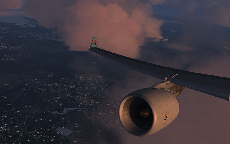 This Airbus A330-200 is a beautiful designed aircraft, the shape of the fuselage represents the A330-200 very well. The Fly into the sky! package contains two A330-200 liveries: Eva Air and Korean Air, but there are many beautiful paints downloadable from websites like AVSIM. The 2d panel is framerate friendly, but doesn't have a FMC. For full IFR flights, you need to use the default Carmin GPS unit. ILS Approaches are no problem, just enter the course/ILS frequency and use the LOC and APPR buttons. The virtual cockpit is a bit simple, only the most important systems are modelled. But it looks nice and is framerate friendly too. There is also a wingview model for even better framerates.