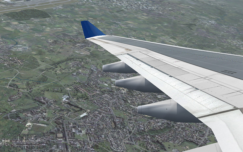 Many cockpit systems are simulated like Realistic EICAM and EFIS displays, GPWS, TCAS, etc. The functionality of the FMS is limited and can automatically read the IFR flightplan that you've created in FS. The flight dynamics are well balanced and the animations are very accurate. The autopilot is working perfectly, but the autoland function is too basic and does not support 'flare' and 'automatic autothrottle disengage' like you find on the PSS A330. So in short, there is no autoland function. With small icons on the 2d panel, you can switch between the virtual cockpit and wingview. There are a few extra features like a 3D pushback truck, air stairs, dynamic wingflex (the wings are moving up and down in turbulent weather), engine exhaust heat effects and more.
