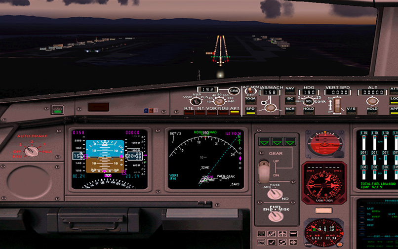The flight dynamics are not bad, it is not very difficult to handle this A340. The 2d panels and the virtual cockpit are simple and don't look like the real A340 cockpit. Instead of typical Airbus systems, flap settings, auto brake, etc, many buttons and handles do look like (and work like) the ones used in the FS2004 default (Boeing) panels. Don't expect systems like TCAS and GPWS, those are simply not modeled. A simple FMC can be used to load FS flight plans and ute them in order to auto navigate on IFR flights.