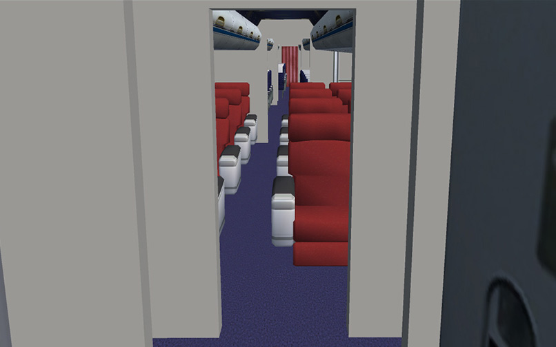 Some nice features are: A passenger cabin which is fully modeled into the virtual cockpit. The default viewpoint in the virtual cockpit mode is the virtual cockpit itself, but with a small program called 'Cabin Views' you can set other viewpoints in the virtual cockpit, like 'First Class Section' and 'Middle Business Class'. Also, the wings and engines are visible from the cabin windows. With the wing fold command, air stairs, a fuel truck and baggage carts show up around the aircraft.